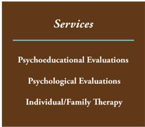Services include assessment and therapy for children, adolescents and adults.
