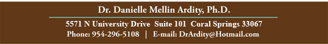 Danielle Mellin Ardity, Ph.D., has been a practicing licensed clinical psychologist in the state of Florida for over a decade. She provides comprehensive assessment and treatment services for children, adolescents and adults. Furthermore, Dr. Ardity has developed an expertise in conducting comprehensive and specialized psychoeducational and psychological evaluations. Dr. Ardity was raised in South Florida. She has worked with most of the private schools and various public schools in the area.